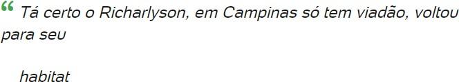 “A sociedade é esmagadora, a sociedade impõe coisas absurdas e às vezes você é obrigado a lidar com isso, sabe? É um absurdo isso. É triste, é uma situação deplorável, me entristece, não só por essa questão, porque realmente nós devemos respeitar o próximo, isso eu estou dizendo como cristão, alguém que acredita em Deus”, completou Richarlyson.