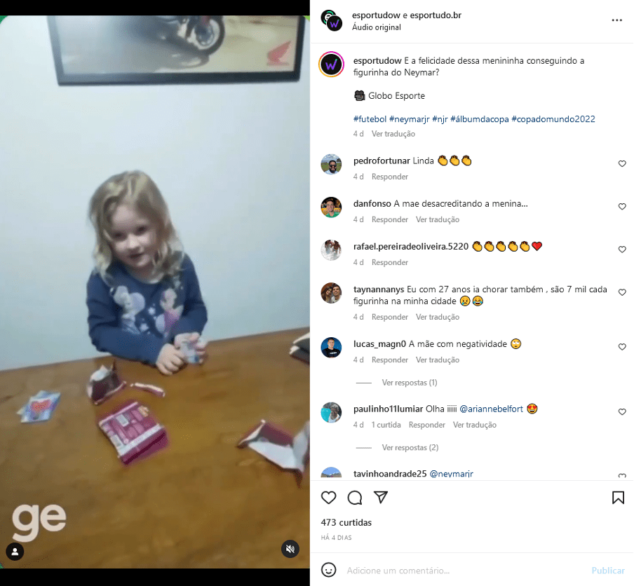 No Instagram, o público da página ainda é majoritariamente masculino, já que, antes o perfil levava outro nome e tratava de outros temas no esporte. Por isso, alguns comentários ainda refletem uma mentalidade machista e sexista diante das postagens sobre esporte feminino. Segundo Isabela, o foco do perfil é comunicar para e com as mulheres, além de buscar construir e transformar o público.