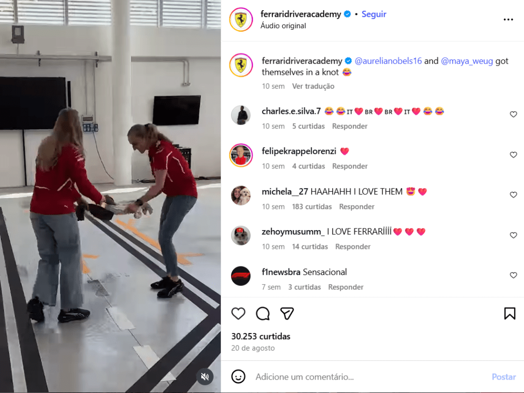 Além disso, o perfil explora conteúdos diversos, desde destaques individuais e bastidores até campanhas de engajamento e iniciativas sobre diversidade. Essa combinação entre tradição e modernidade reflete o prestígio da marca e evidencia como a Ferrari Academy representa seus participantes, homens e mulheres, dentro de um discurso que valoriza mérito, desempenho e representatividade.