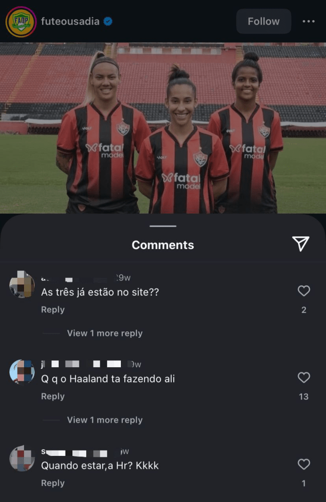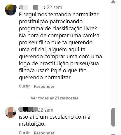 Mesmo em pouco tempo de parceria já é notório comentários do público que ferem essas atletas, desrespeitando essas mulheres e indiretamente ofendendo aquelas que fornecem trabalho na plataforma também. No Instagram, como indica a imagem abaixo, podemos ver um exemplo de como esse patrocínio, apesar de benéfico para o campeonato, pode ser prejudicial para a imagem das atletas, que tem a integridade ferida por parte de um público preconceituoso, que utiliza da internet como um meio de direcionar ataques de ódio à grupos sociais minoritários, nesse caso, mulheres do futebol.