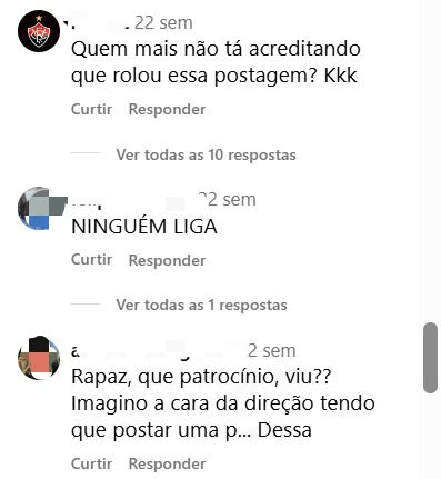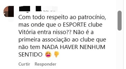 O EC Vitória é um exemplo de como as ações do time causam reações negativas nos torcedores, que se pronunciam publicamente, como no comentário acima: “Ninguém liga. Essa parceria só é boa pra essa empresa”. Ao investigar sobre os benefícios da parceria, a torcida se frustra buscando entender a motivação além do poder monetário, e se manifesta por meio de comentários negativos nas redes do clube, como por exemplo: